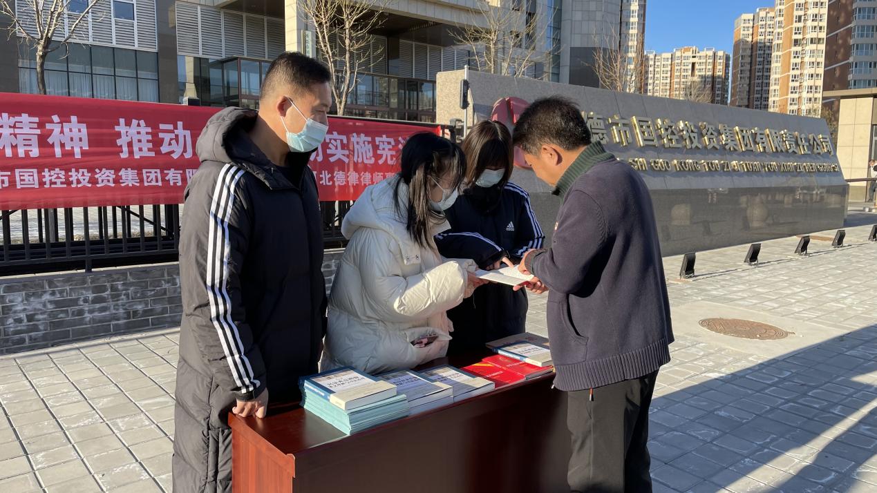 在線下,市國控集團聯(lián)合公司常年法律顧問——河北德律律師事務(wù)所共同開展普法宣傳活動。