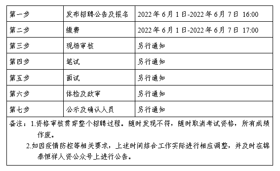 ?2022年6月1日至2022年6月7日16:00 在錦泰恒祥人資官網(wǎng)(www.jthxhr.com)、“錦泰恒祥人力資源服務(wù)有限公司”微信公眾號(hào)、“國控集團(tuán)”官方網(wǎng)站(m.848734.com)及上級(jí)部門要求的相關(guān)網(wǎng)站等發(fā)布招聘公告。